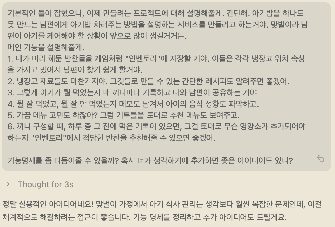 목적은 '남편에게 아기 밥 차리게 만들기'를 가능케 만들도록 하는 것.