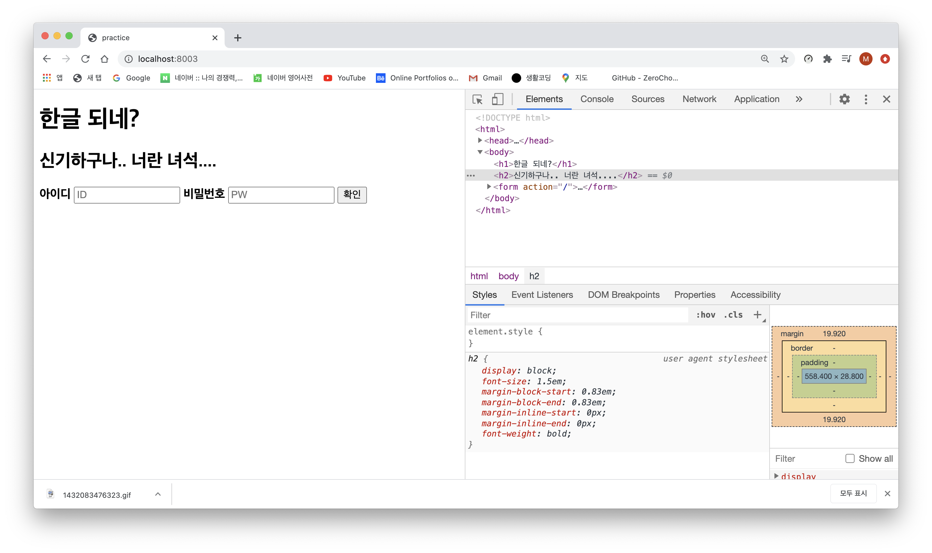 <h1>한글 되네?</h1>
