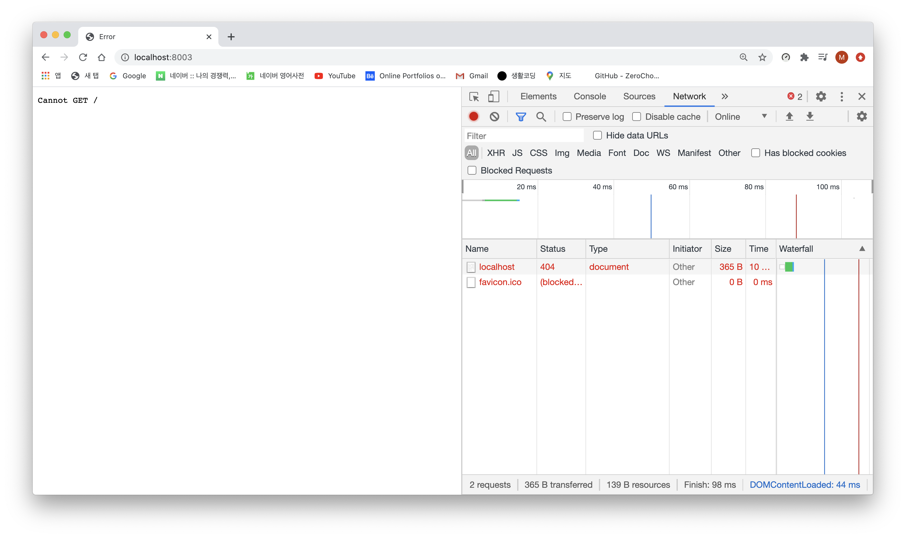 Cannot GET / 이라고 뜨니 url을 get 할 수 있게 설정해보도록 합니다.