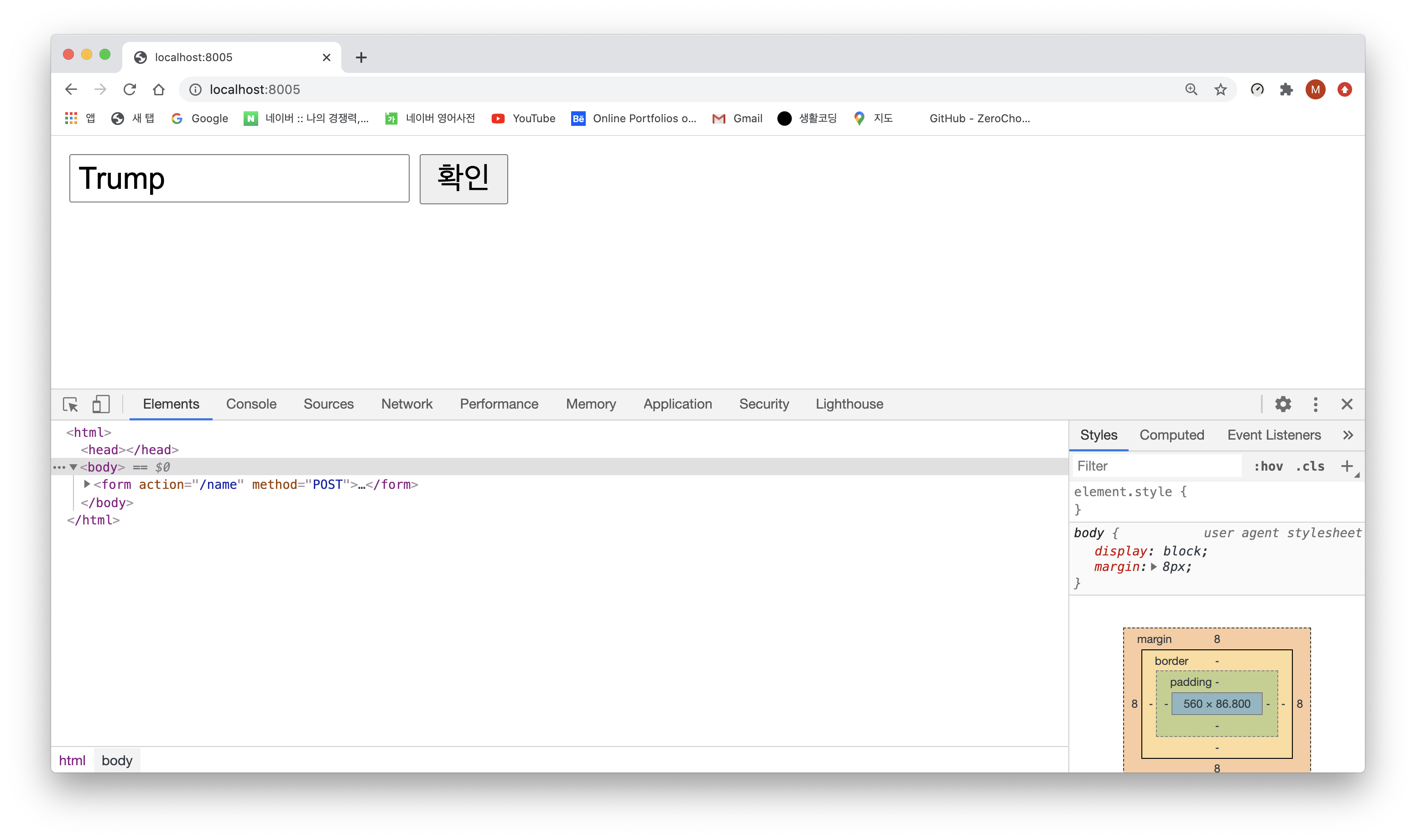 form tag의 method가 POST로 되어 있을때, POST를 받기 위해서는 body를 통해 접근해야 합니다.