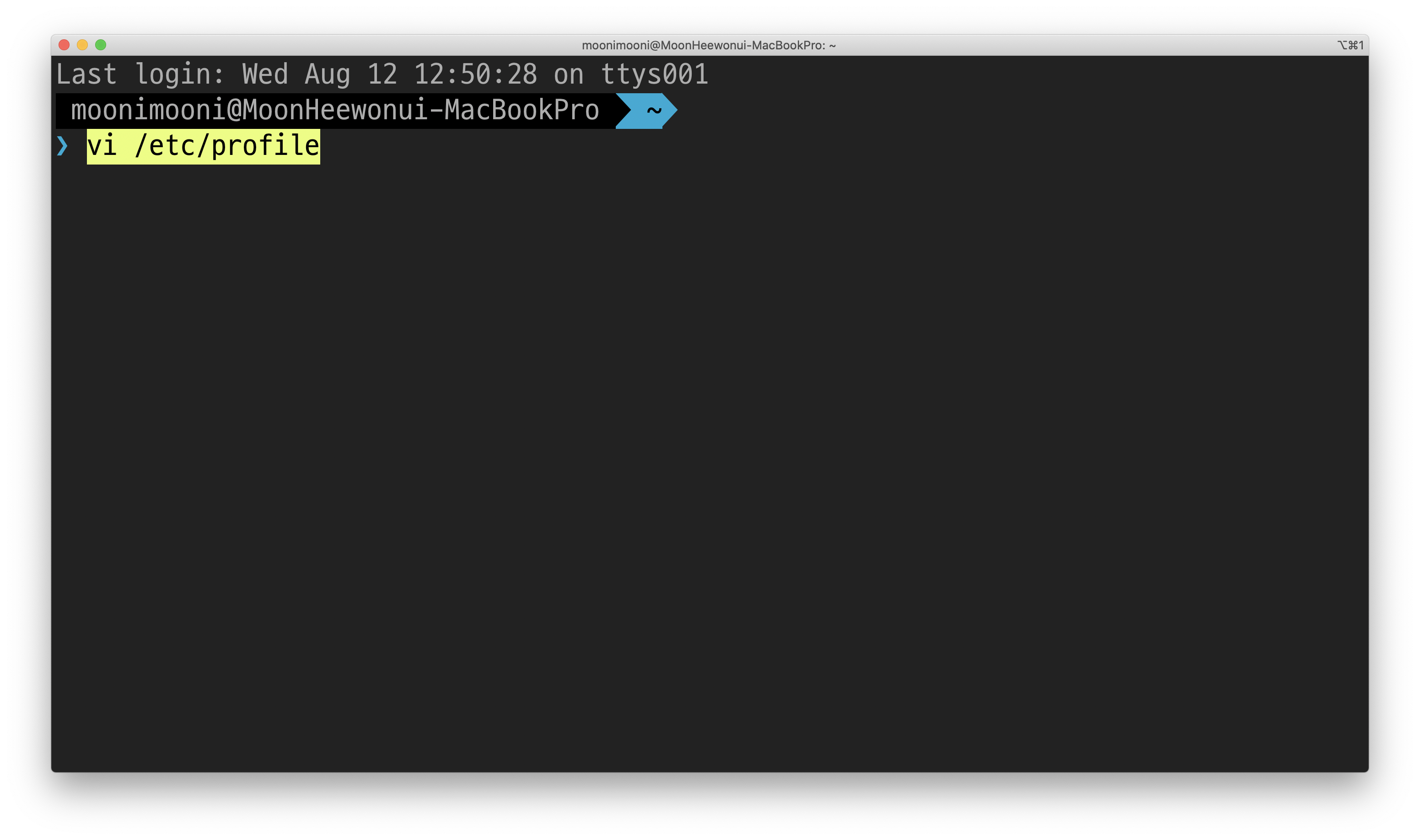 $ vi /etc/profile 명령어로 해당 파일을 열고 맨 아래줄에 커서를 놓고 i를 눌러 insert 형식으로 바꾼 뒤