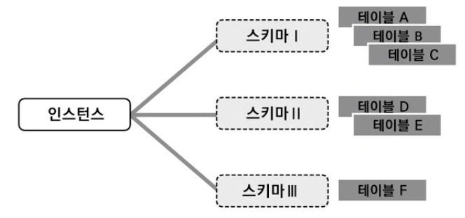인스턴스는 데이터베이스(schema)들이 저장되어 있는 곳으로,