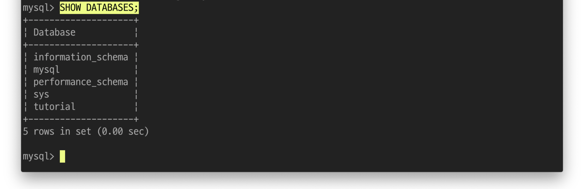 $ SHOW DATABASES;
