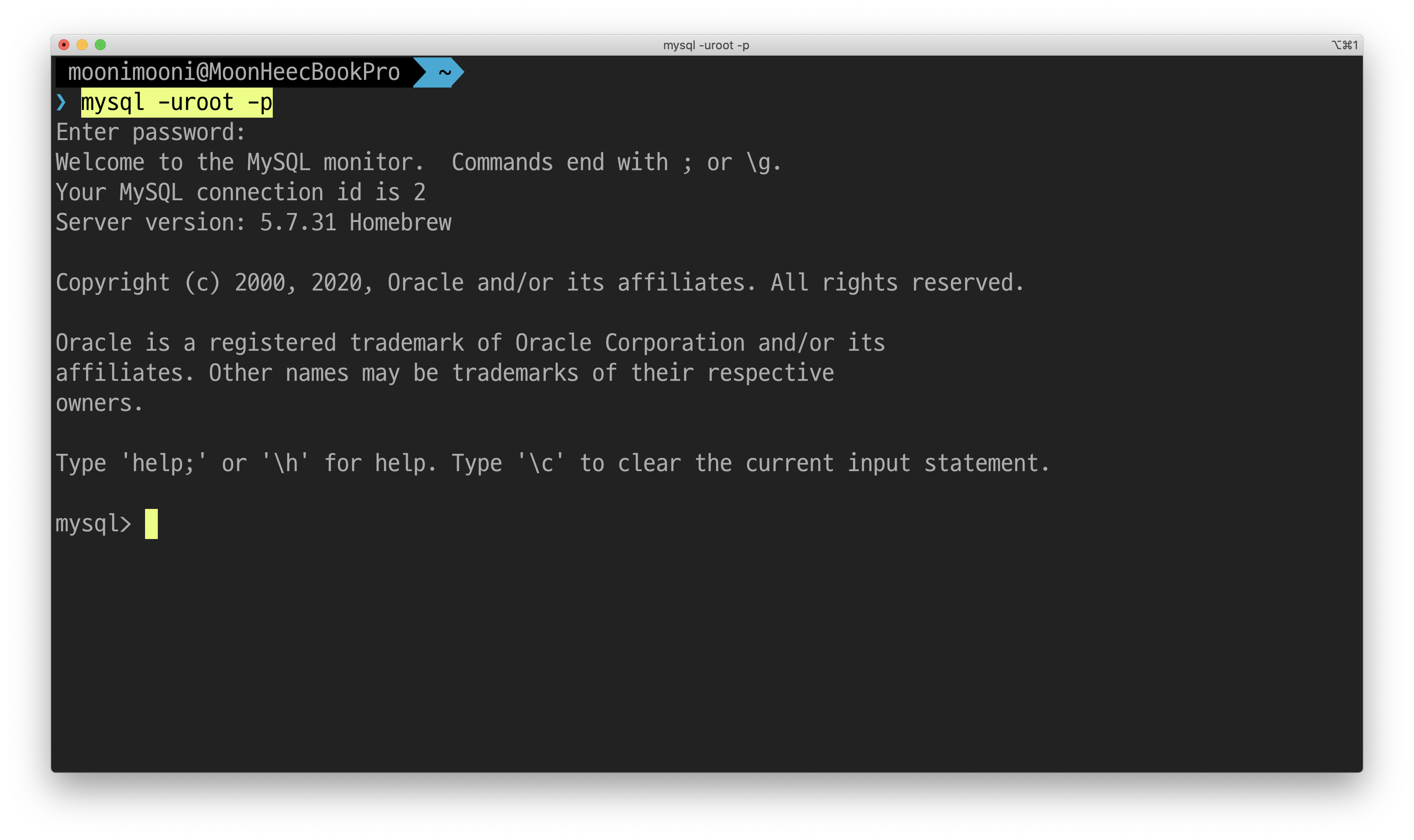 $ mysql -uroot -p