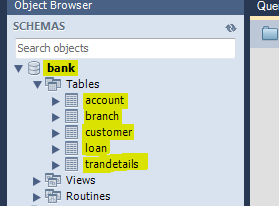 그 테이블들을 담은 bank가 데이터베이스(스키마)가 됩니다.