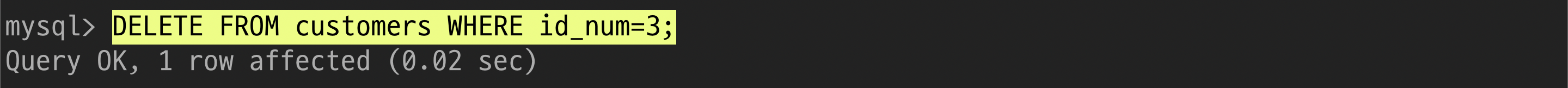 $ DELETE FROM 테이블이름 WHERE 삭제대상의 열='삭제대상 이름';