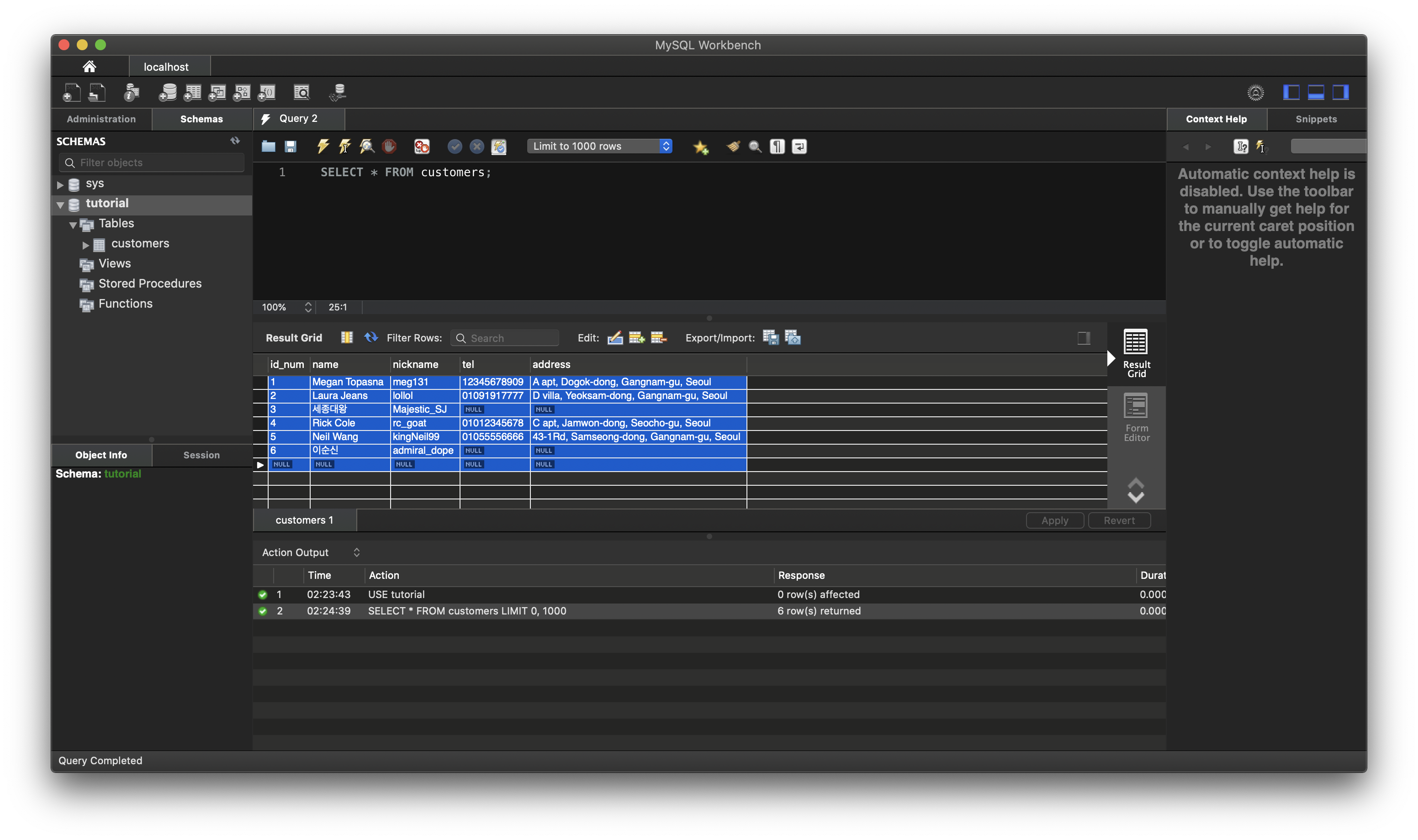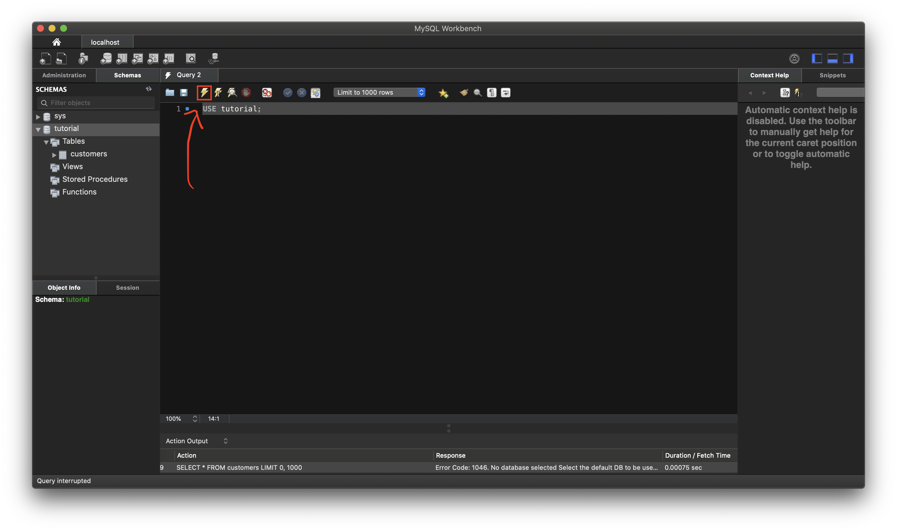 MySQL Workbench에서는 명령어를 실행할 때