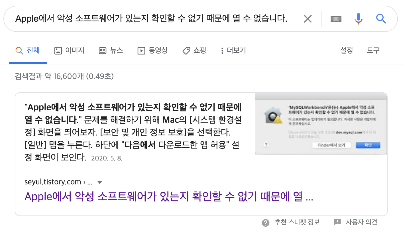 그 후 응용 프로그램에 있는 아이콘을 누르면 에러메세지가 뜨니 아래의 작업이 필요합니다.