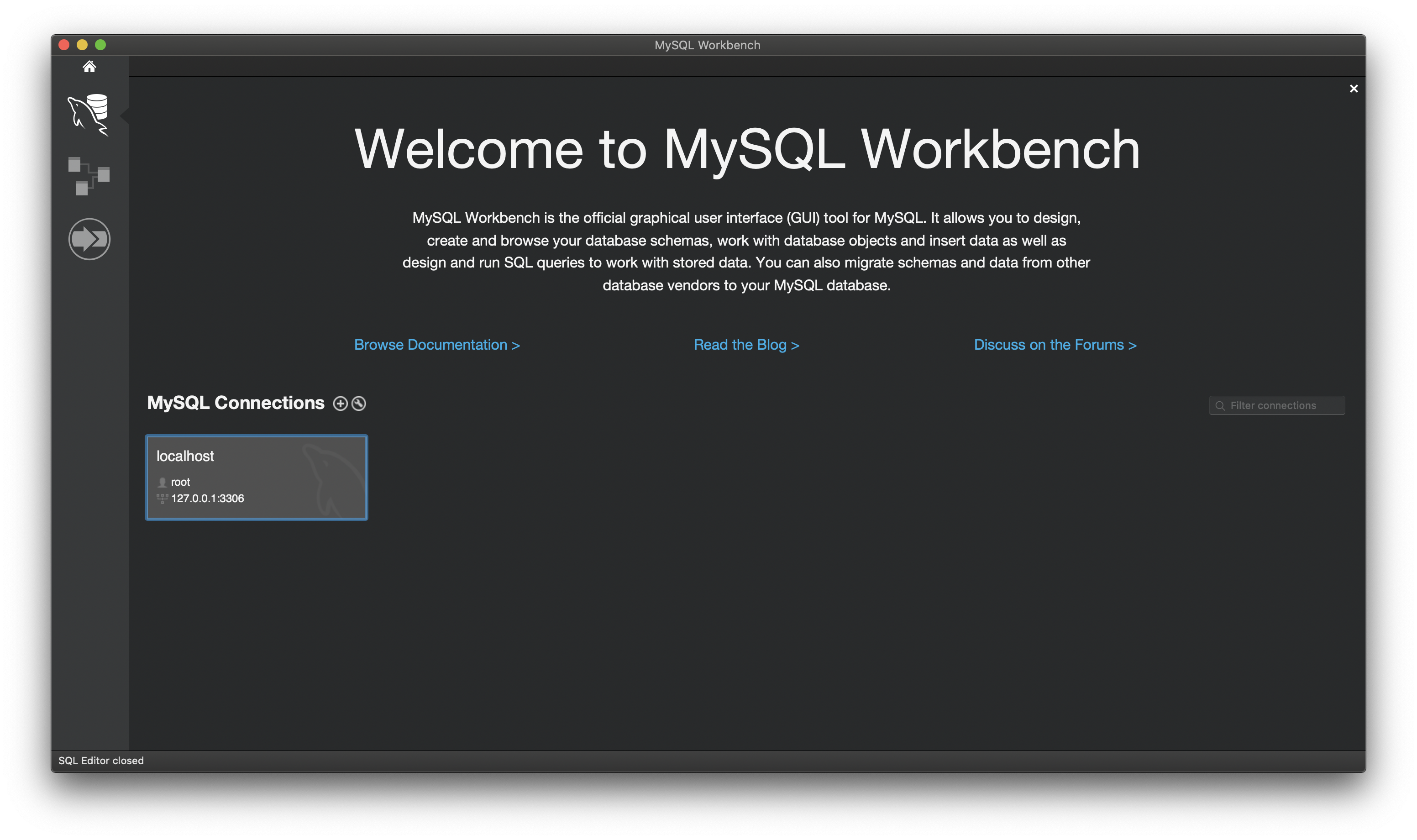확인을 누르면 MySQL Connections 창에 서버가 생성된 걸 확인할 수 있습니다.