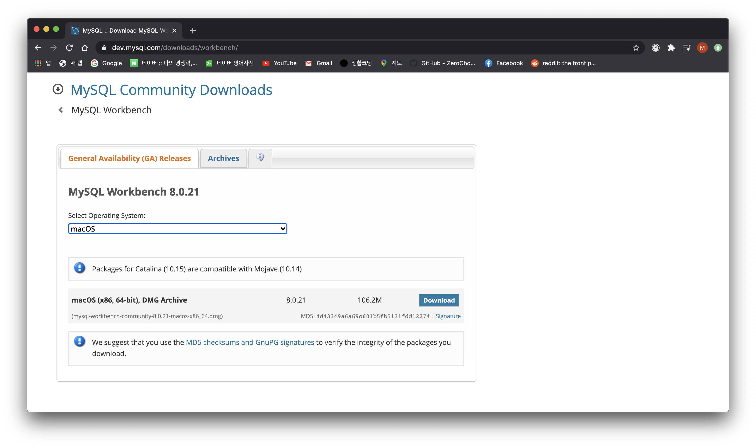 다운로드는 MySQL 사이트를 통해 할 수 있습니다.