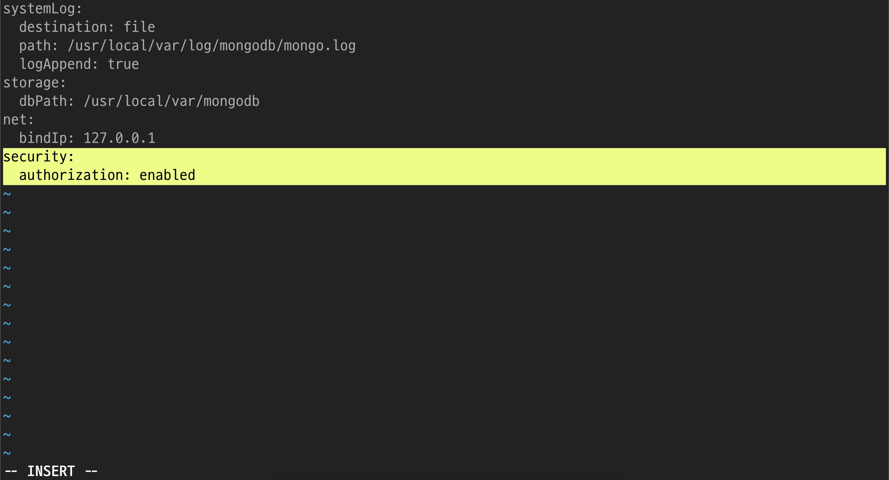 $ vi /usr/local/etc/mongod.conf