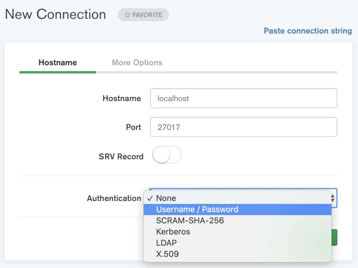 Authentication 옵션에 Username / Password를 선택합니다.