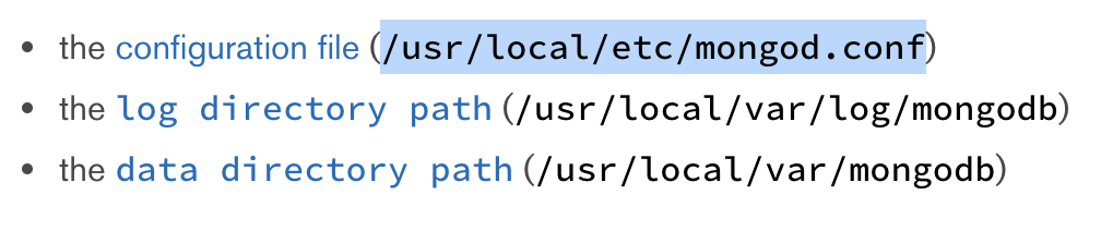 Homebrew로 mongoDB를 처음 설치하면 아래와 같은 파일/폴더가 생성됩니다.