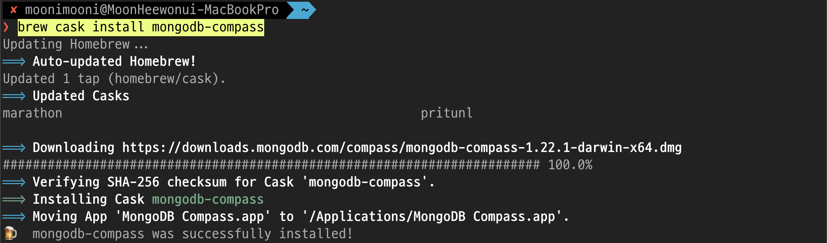 $ brew --cask install mongodb-compass