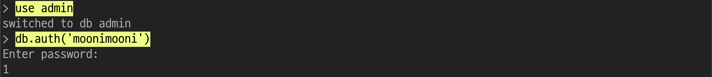 db.auth('username') 을 하면 비밀번호를 입력하라 합니다.