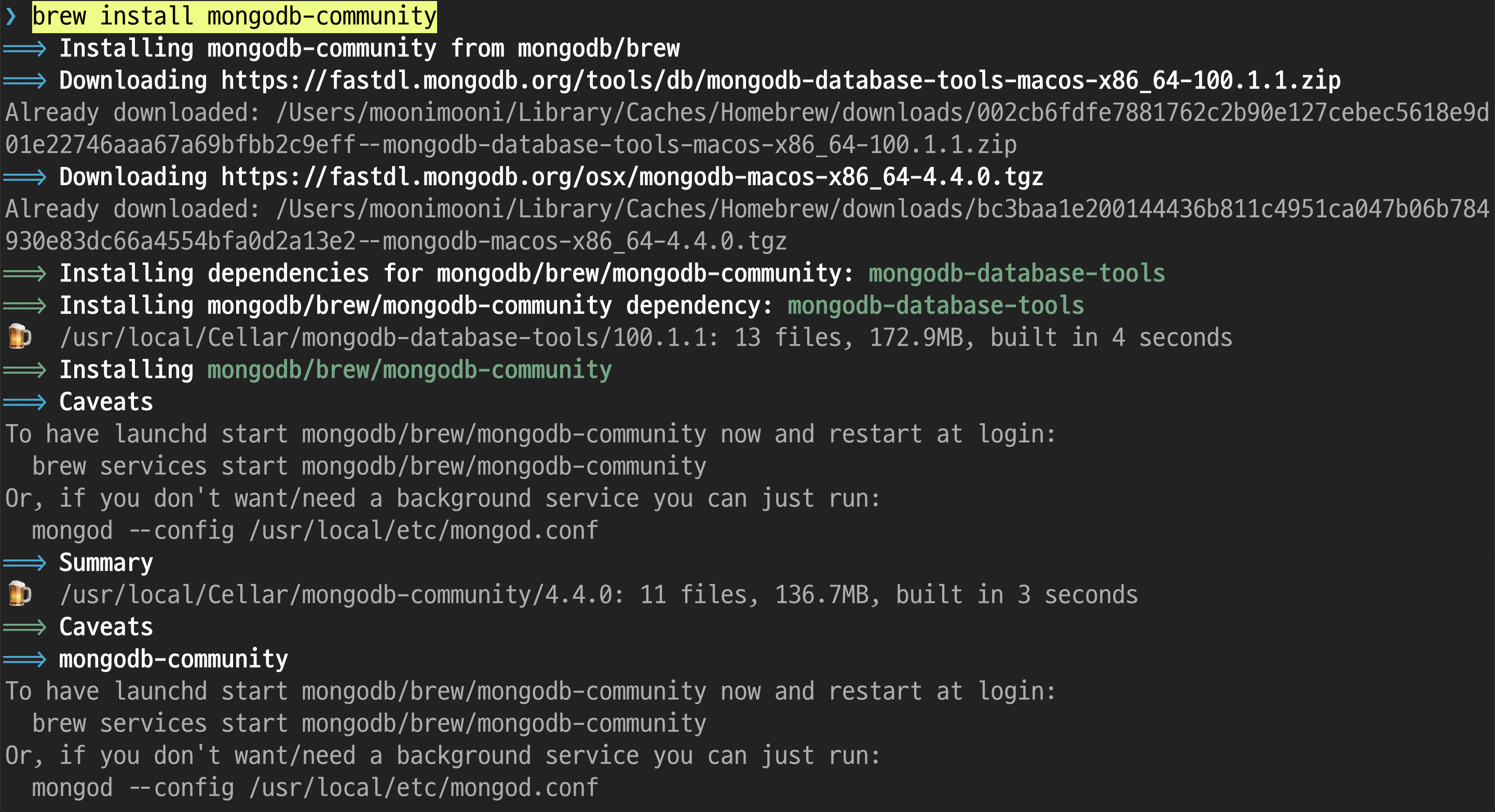 $ brew install mongodb-community