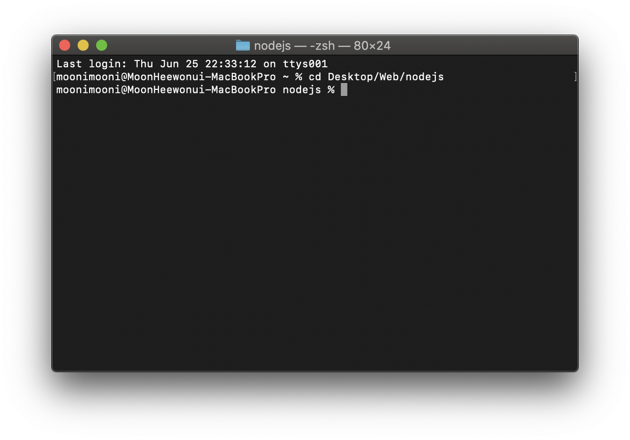 터미널에서 실행시, command + space 키로 spotlight을 실행한 후, 터미널을 검색하고 실행한다.