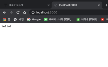 노드를 활용하여 Hello?가 찍히는 간단한 웹서버를 열어보자.