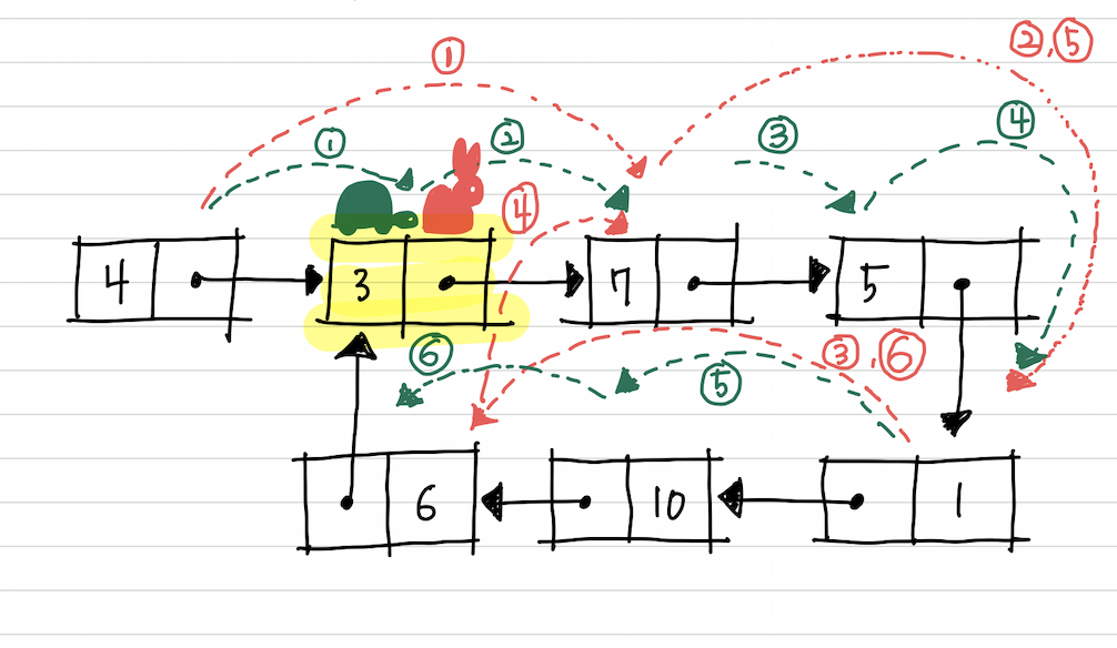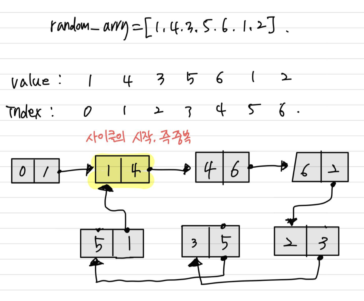 그리고 중복되는 값이 있다면, 해당 값이 사이클의 시작점이 됩니다.