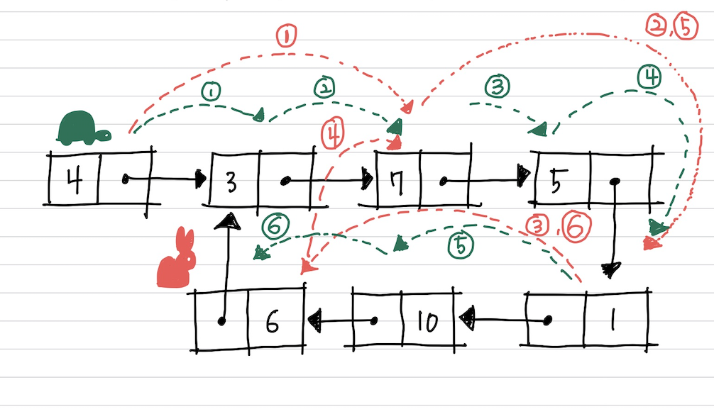 그러던 중 둘이 처음으로 만나는 지점이 바로 순환의 시작점이 됩니다.