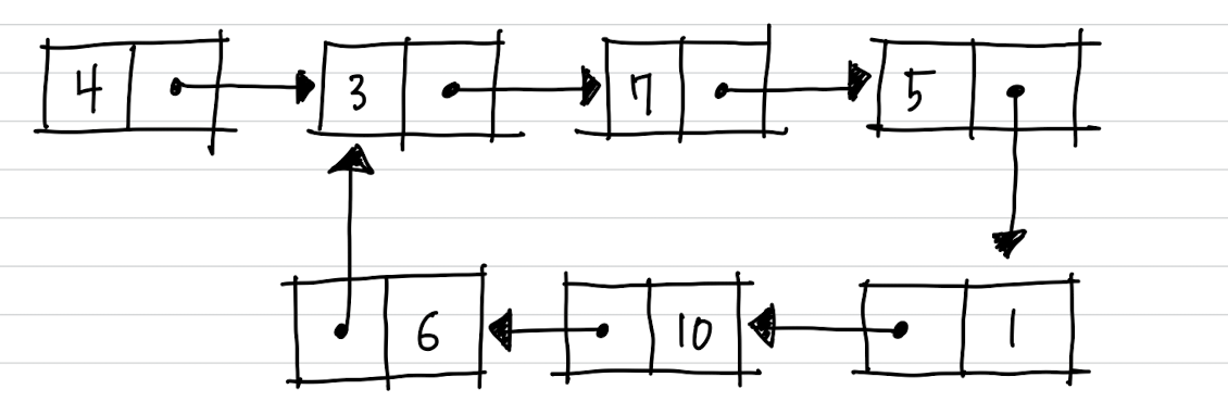 주어진 링크드 리스트에 사이클이 있는지 확인할 수 있습니다.