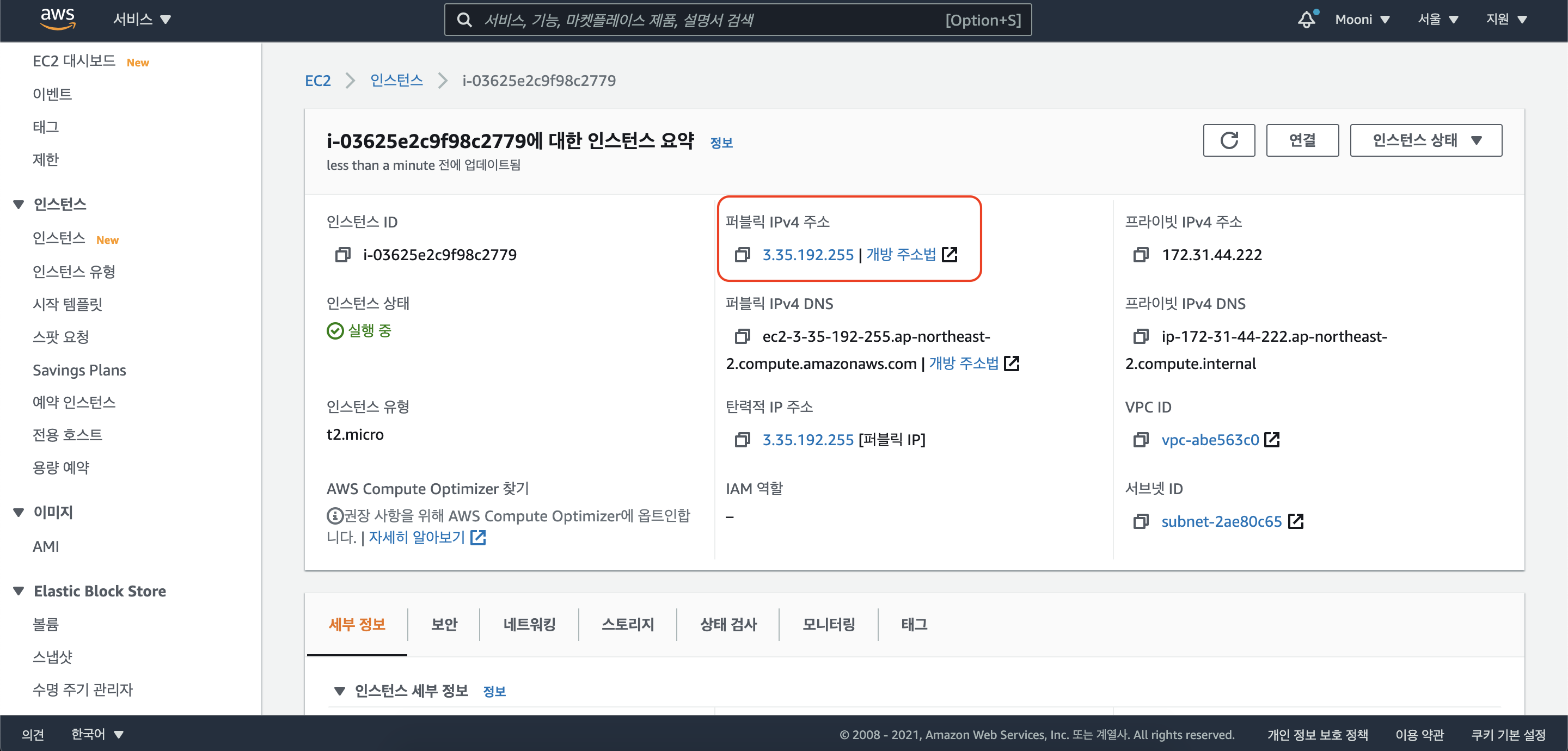 $ ssh -i moonimooni.pem ubuntu@3.35.192.255