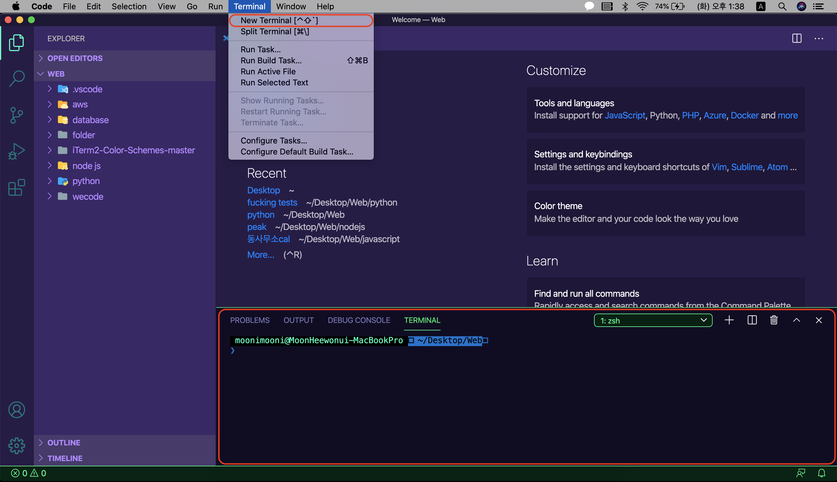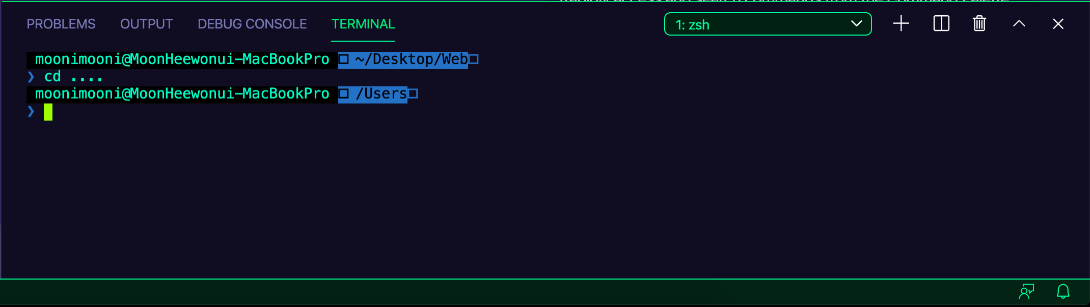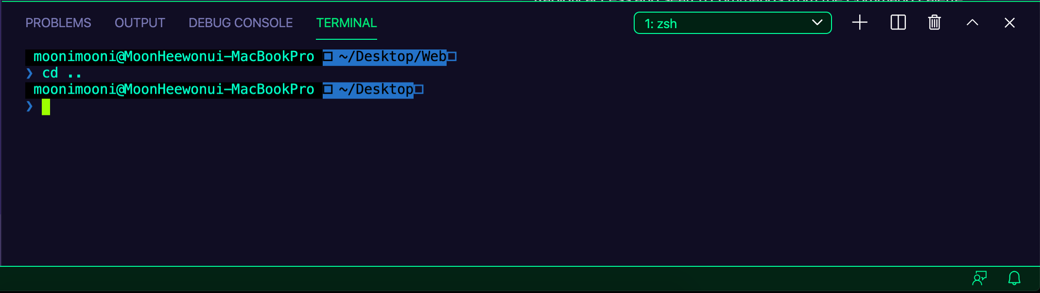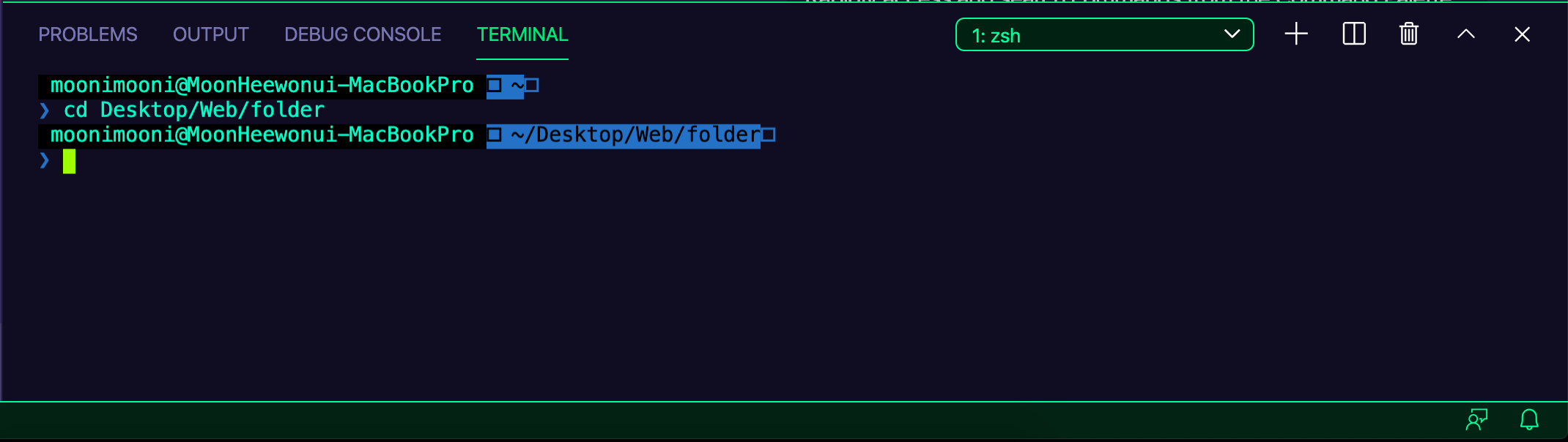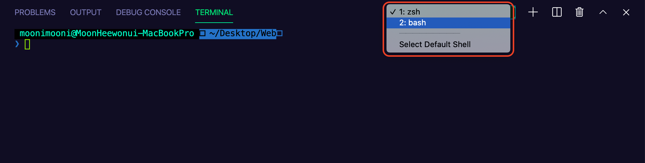 참고로 저의 VS code Terminal 기본 shell 은 zsh로 설정되어 있습니다.