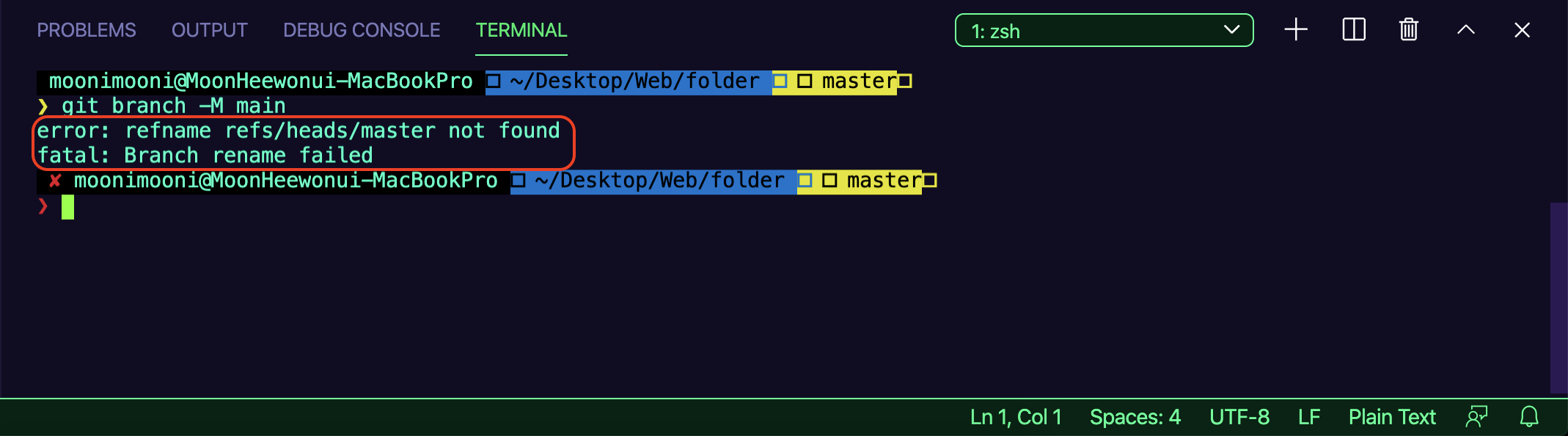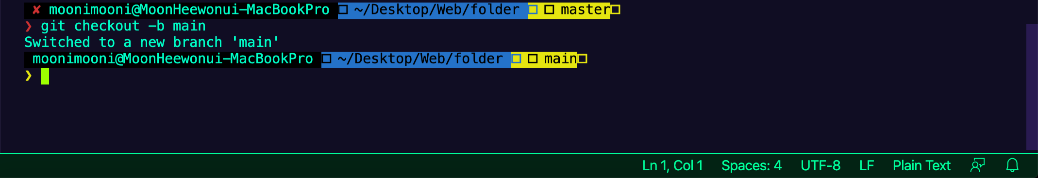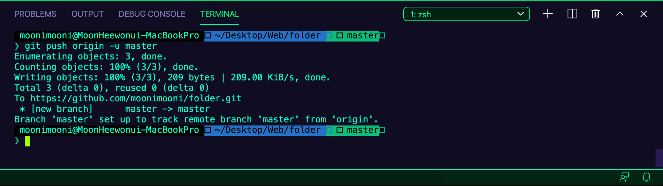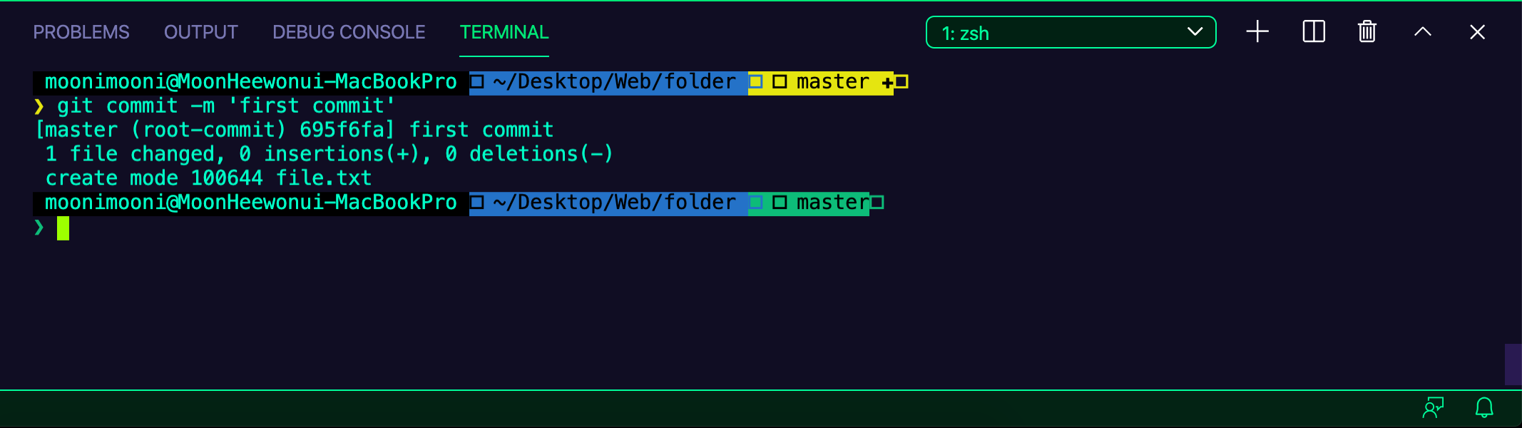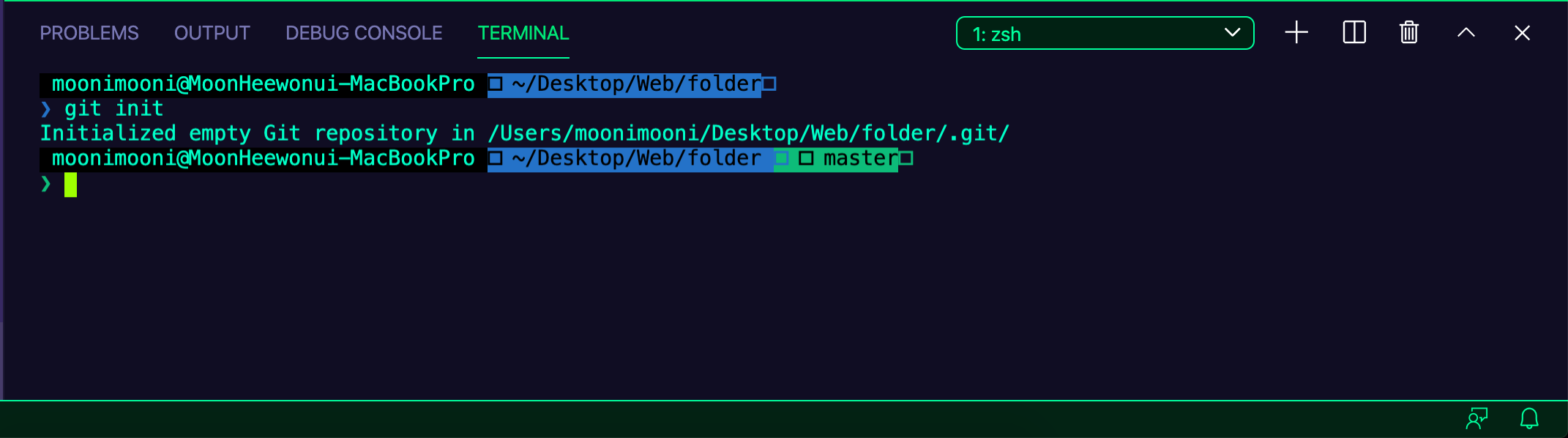 그러면 새로운 'master'라는 단어가 나의 디렉토리 뒤에 붙습니다.