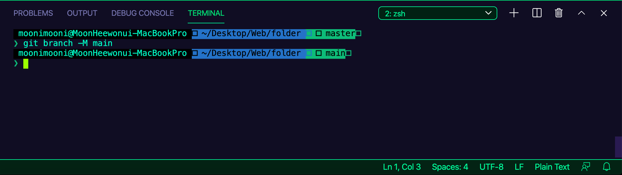 $ git branch -M new_branch_name #현재 브랜치를 new branch name으로 강제 변경