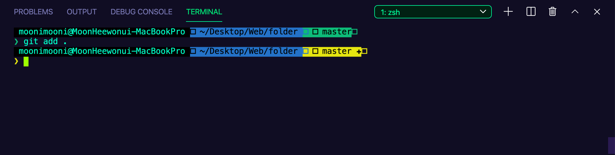 git add 뒤에 점을 하나 붙이면 (git add .) 수정사항이 있는 모든 파일을 add합니다.