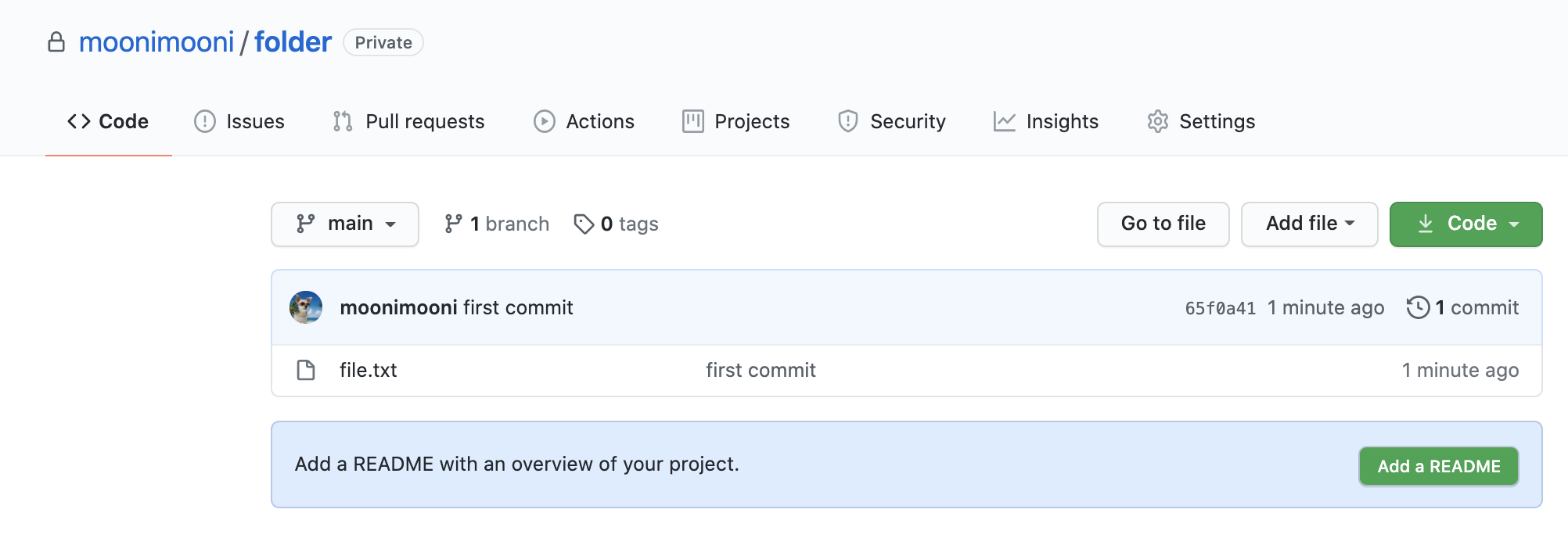 다시 github 페이지를 새로고침 해보면 정상적으로 push가 된 걸 확인할 수 있습니다.