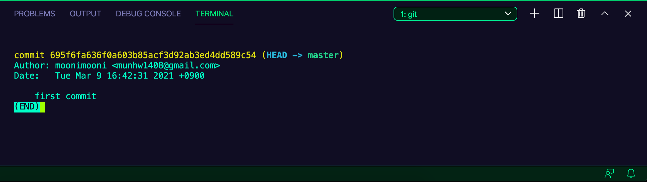 이제 아래 명령어를 통해 commit해줍니다. (최종 저장)