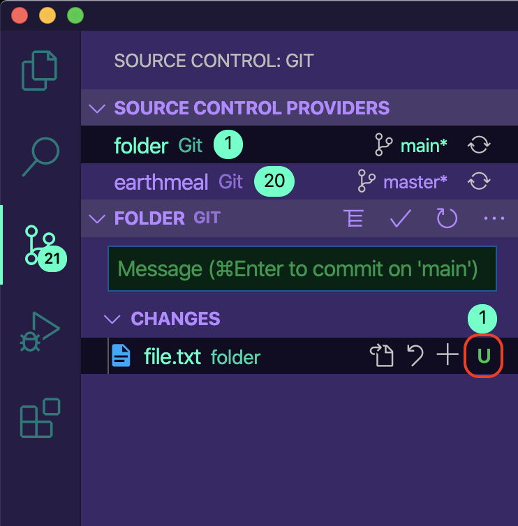 새로 만들어진 파일이니 U (untracked) 상태로 뜹니다.
