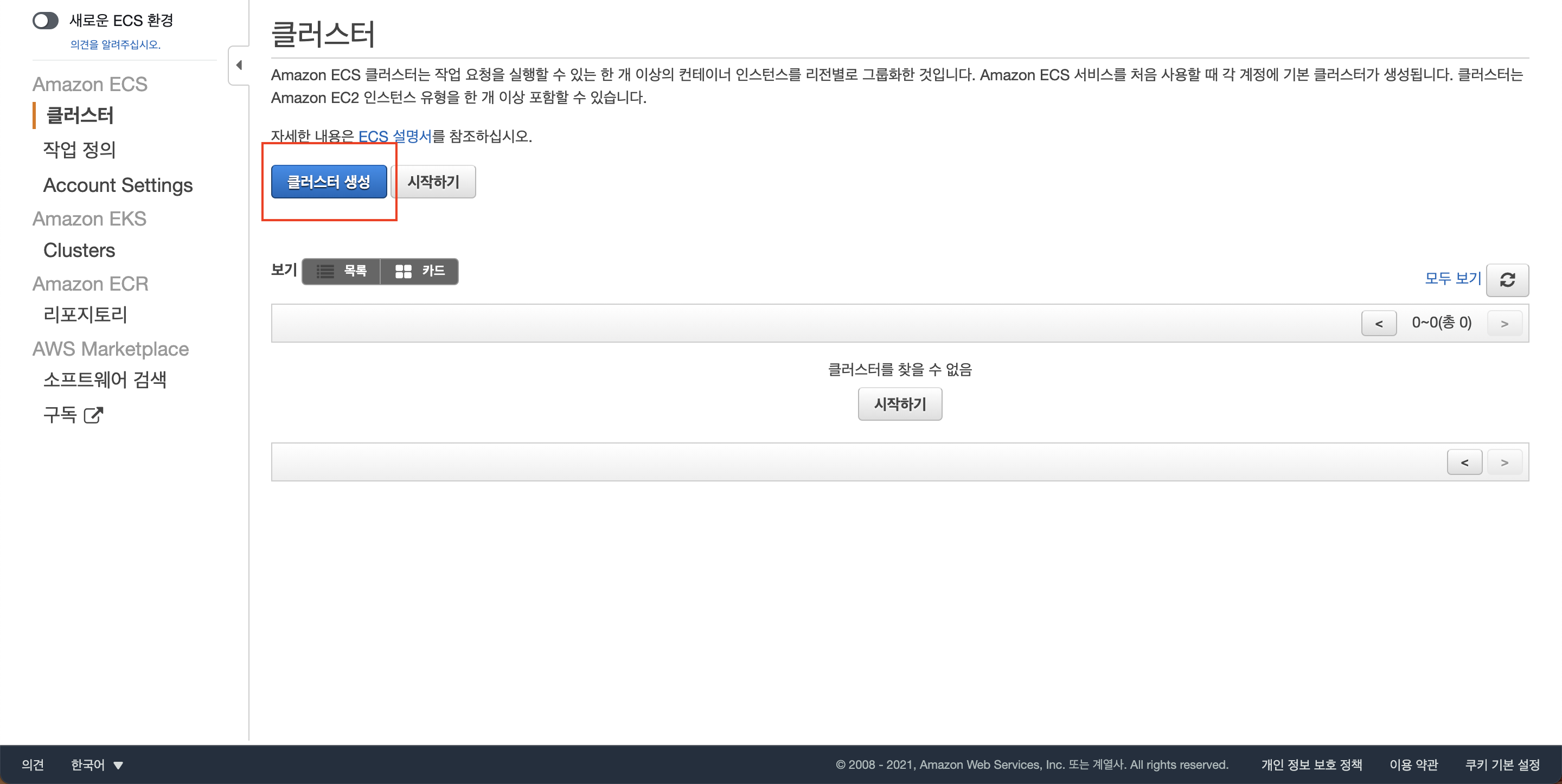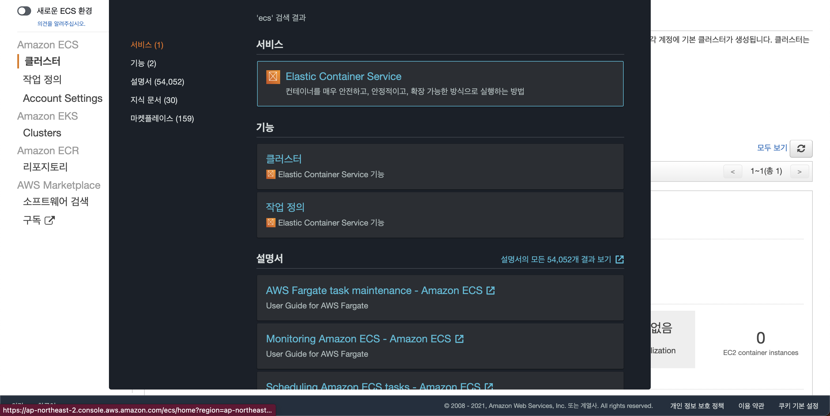 AWS에서 ECS를 검색하면 바로 Elastic Container Service가 뜹니다.