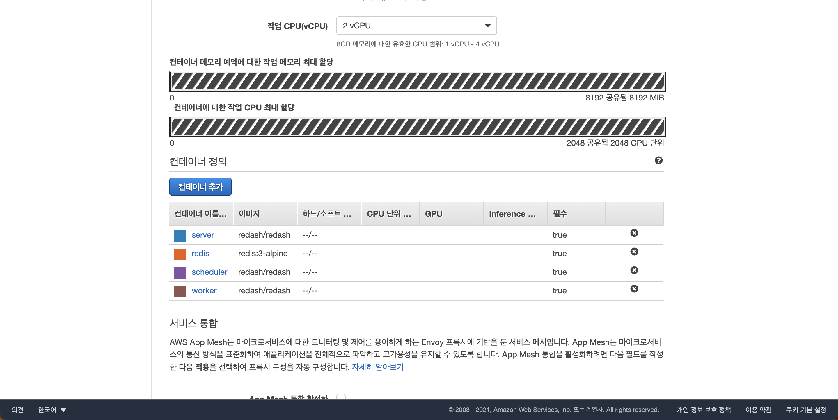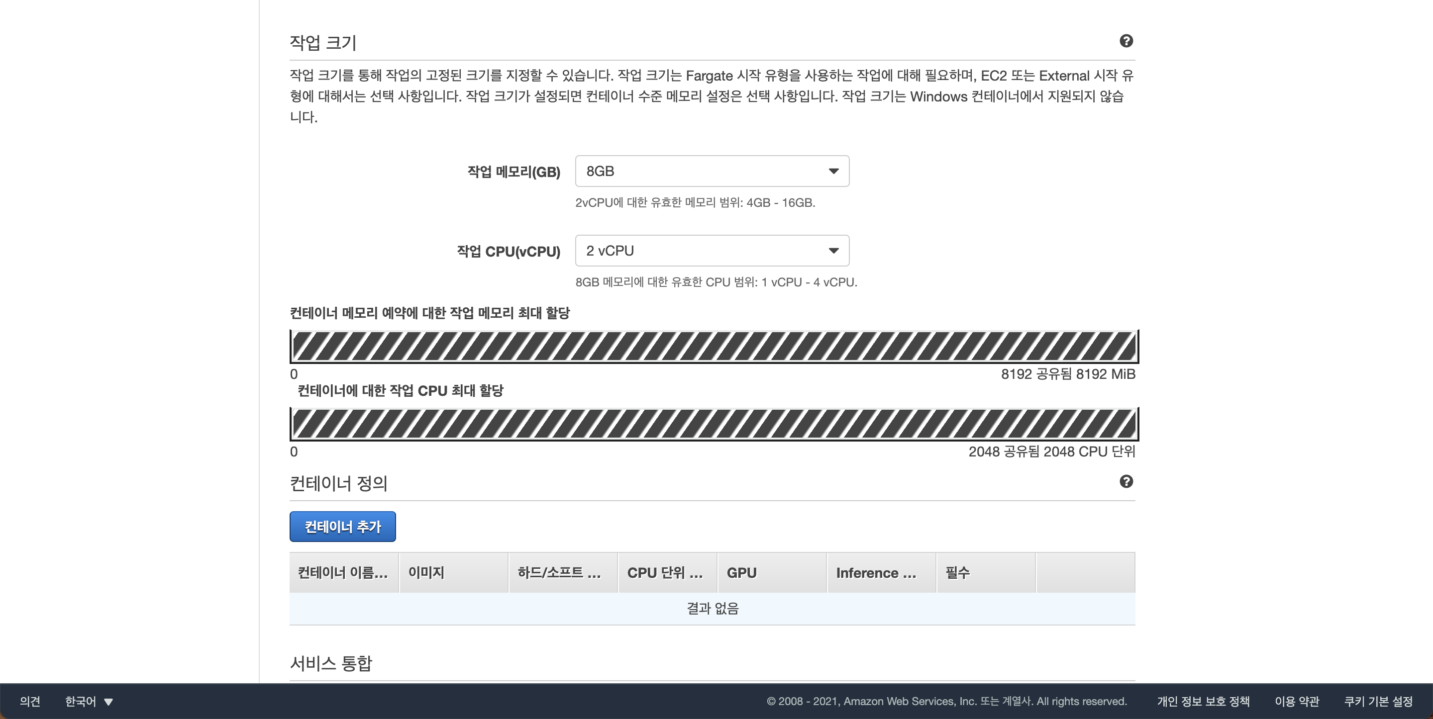 작업 크기를 정해줘야 합니다. 저의 경우 EC2의 스펙과 동일하게 갔습니다.