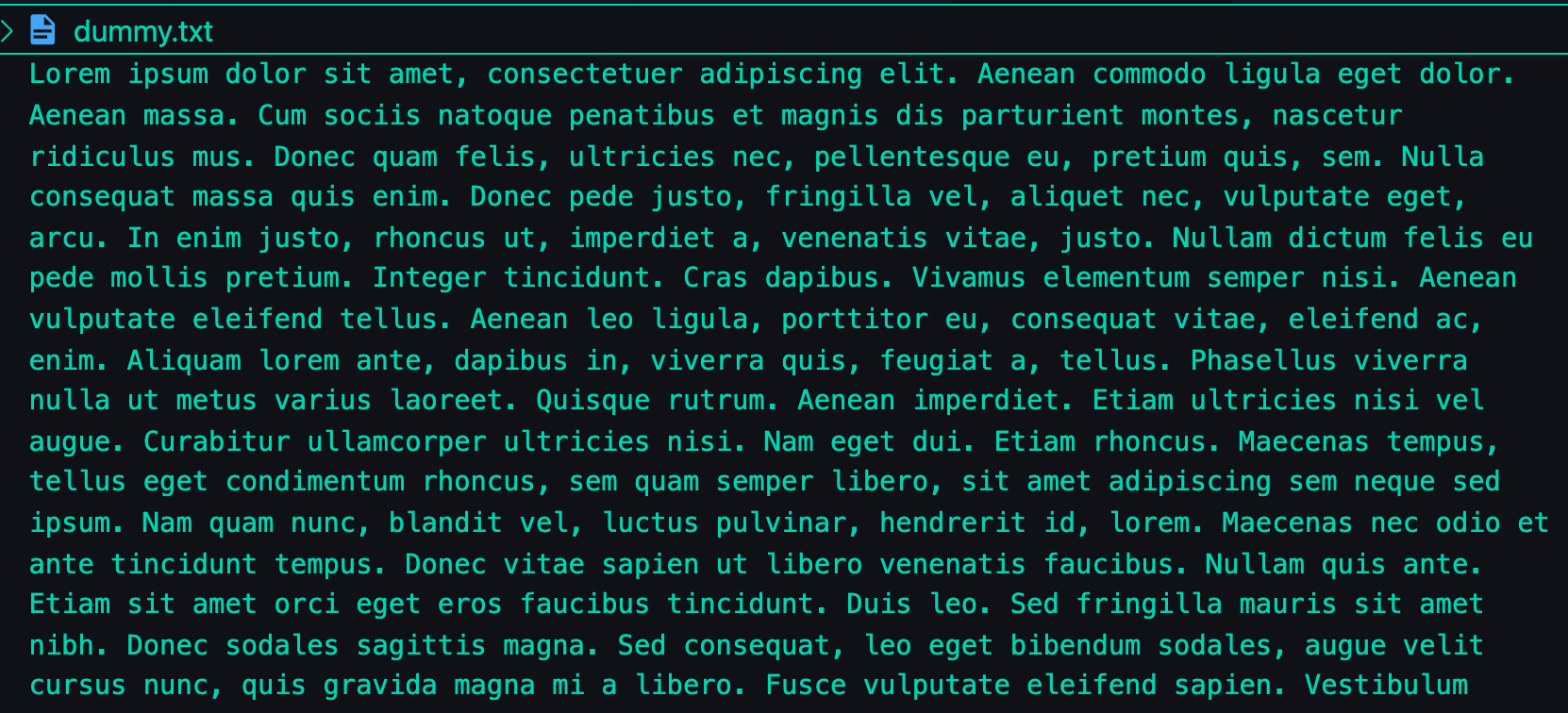 여기 꽤 많은 내용을 담고 있는 dummy.txt라는 파일을 불러올 stream을 생성해봅시다.