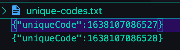 // => [ { uniqueCode: 1638104987792 }, { uniqueCode: 1638104987793 }, ... ]