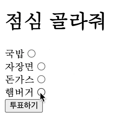 예시 상황 : 점심 메뉴 투표화면 만들기