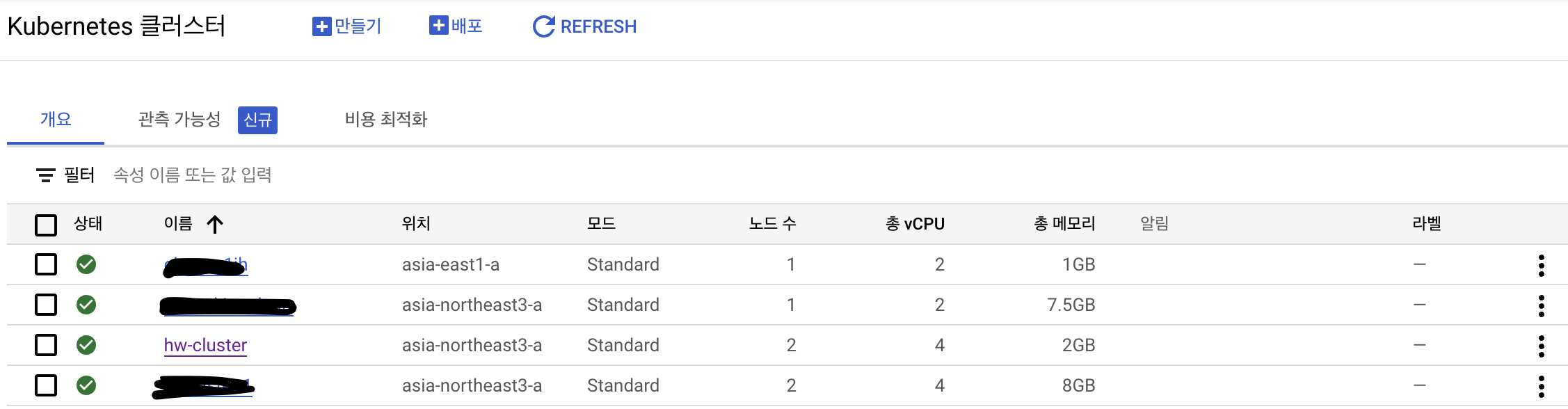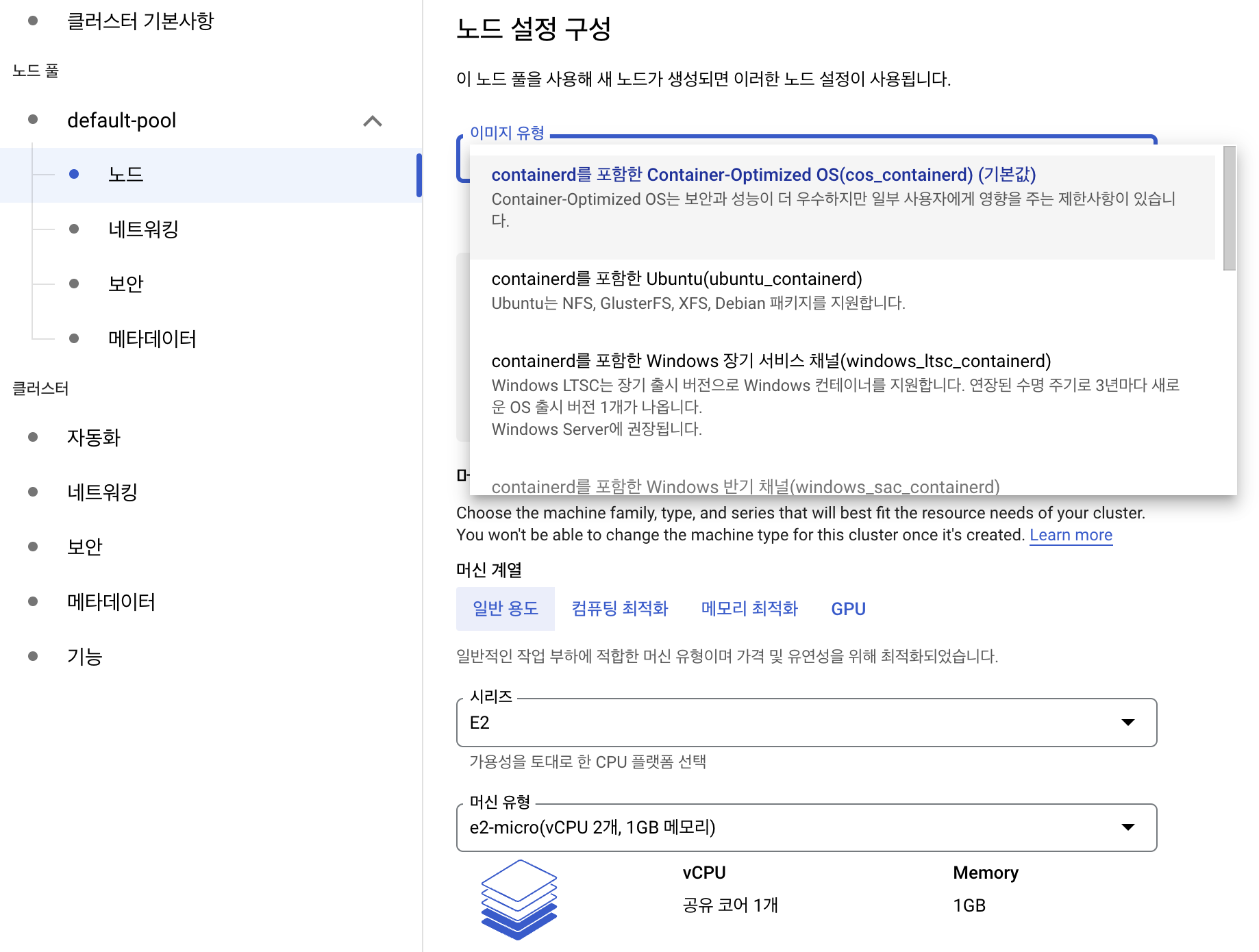 노드는 두 개였고, 노드 하나당 vCPU2개, 1GB 메모리를 골랐으니 스펙에 맞게 잘 생성된 것 같습니다.