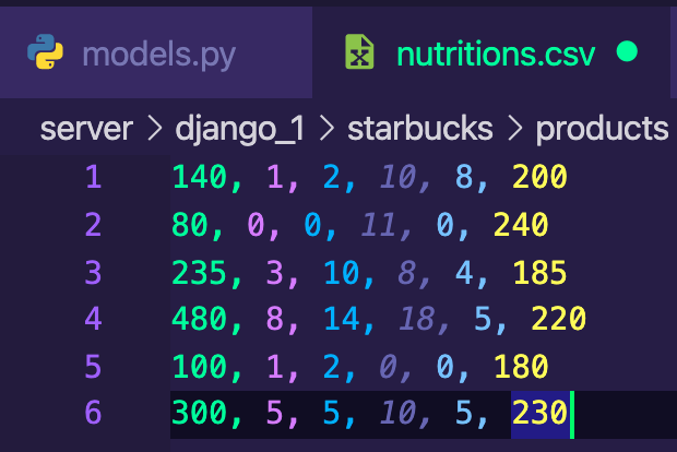 스타벅스 메뉴와 상품들에 대한 정보를 Django를 통해